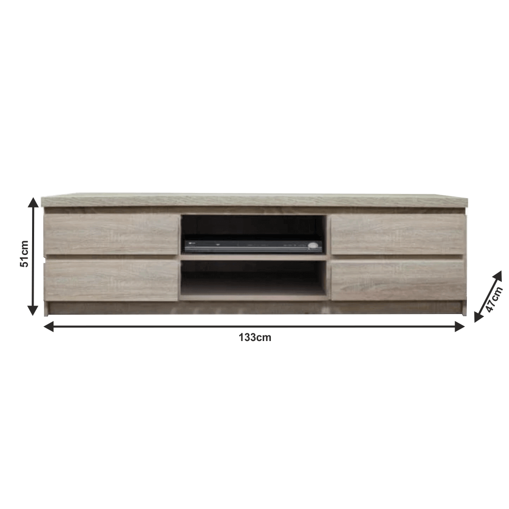 Mobilier de ansamblu modern potrivit pentru amenajarea livingului, material: PAL melaminat, margini ABS. Culoare: stejar sonoma. Toate componentele sunt în stoc. Componentele din mobilierul de ansamblu se vând separat.