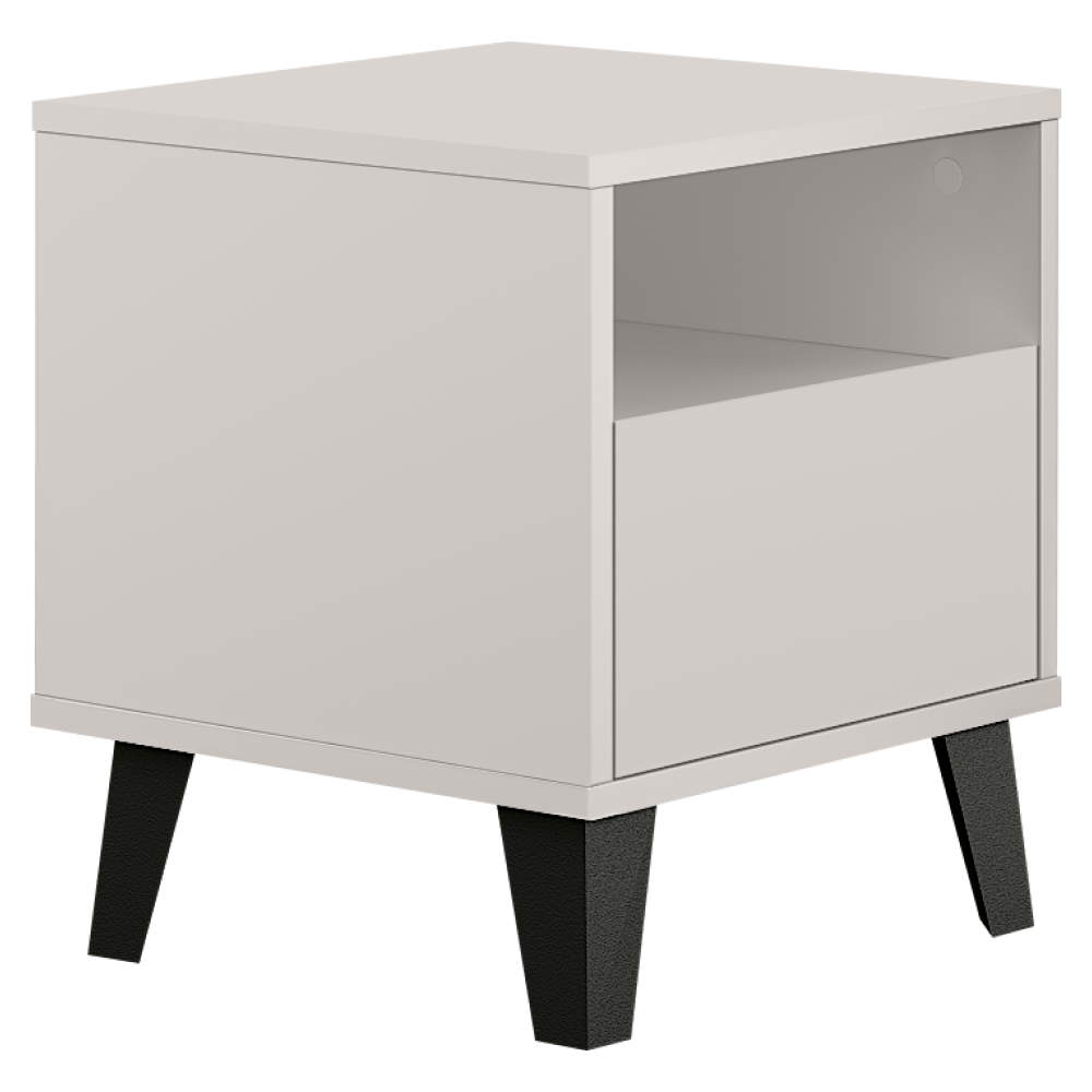 Material: DTD laminat Culoare: caşmir Dimensiuni (Lxlxh): 40x38,8x45,6 cm Înălţimea spaţiului inferior de la podea: 12 cm 1 sertar Dimensiunea sertarului (Lxh): 36,2x18 cm Compartiment de depozitare deschis Înălţimea compartimentului de depozitare deschis: 12,4 cm Pe picioare Culoare picior: negru Portanţa sertarului şi poliţei: 5 kg Portanţa plăcii superioare: 15 kg Design modern Fără mânere Vă recomandăm să ataşaţi mobilierul de perete Livrat dezasamblat
