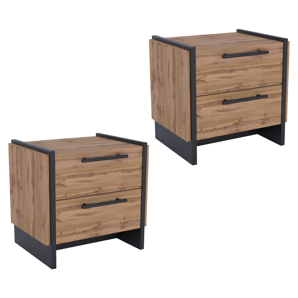 Material: DTD laminat/margini ABS Culoare: stejar wotan/negru Dimensiuni (Lxlxh): 48x36x45 cm Grosime material: 1,6 cm Portanţă placă superioară: 5 Kg Mânere din plastic Culoare mânere: neagră Două sertare Portanţă sertar: 5 kg Înălţime sertar: 16,1 cm Picioare din plastic DTD dublu laminat Design modern Livrarea include două piese Livrat dezasamblat