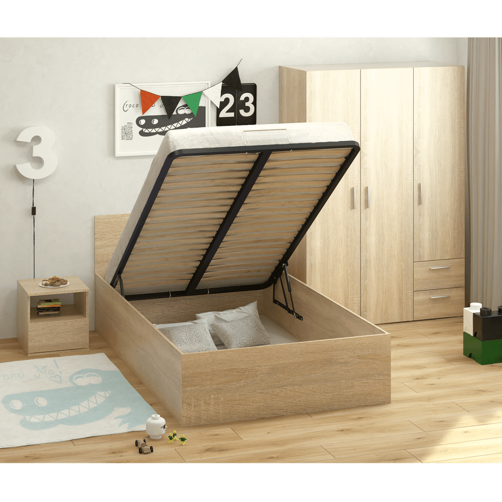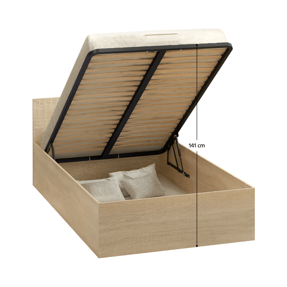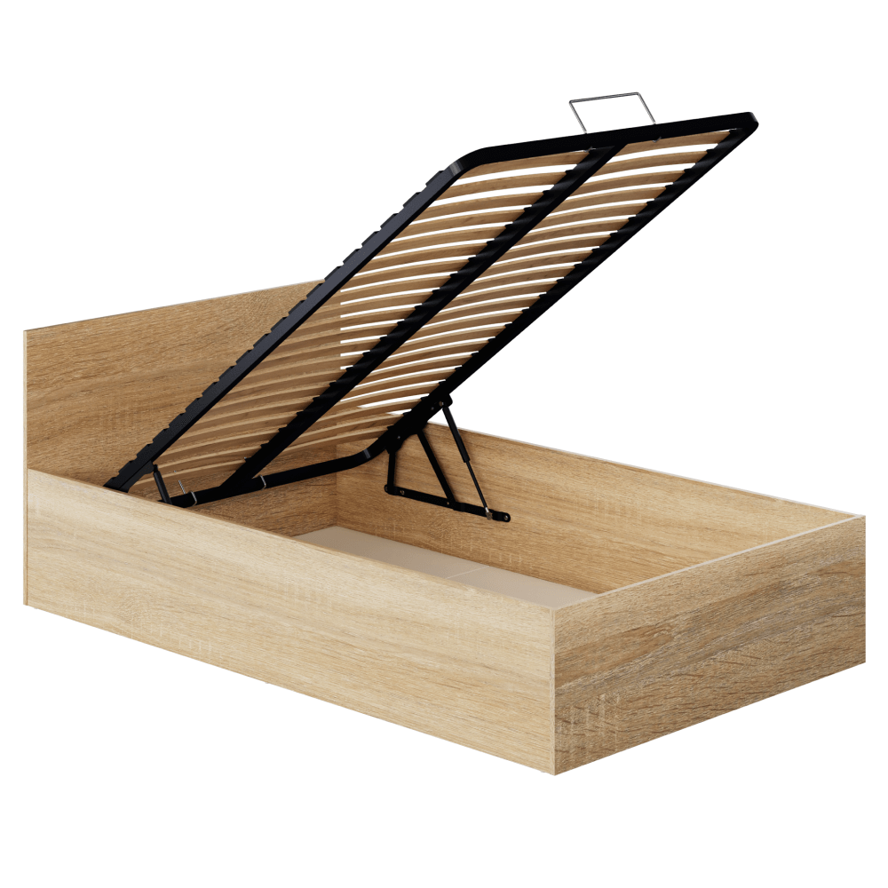 Pat cu grătar metalic şi spaţiu de depozitare, 120x200, stejar sonoma, DOLI