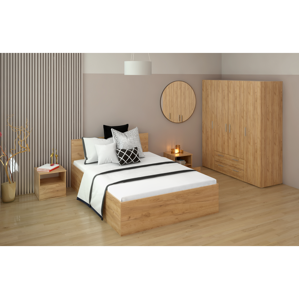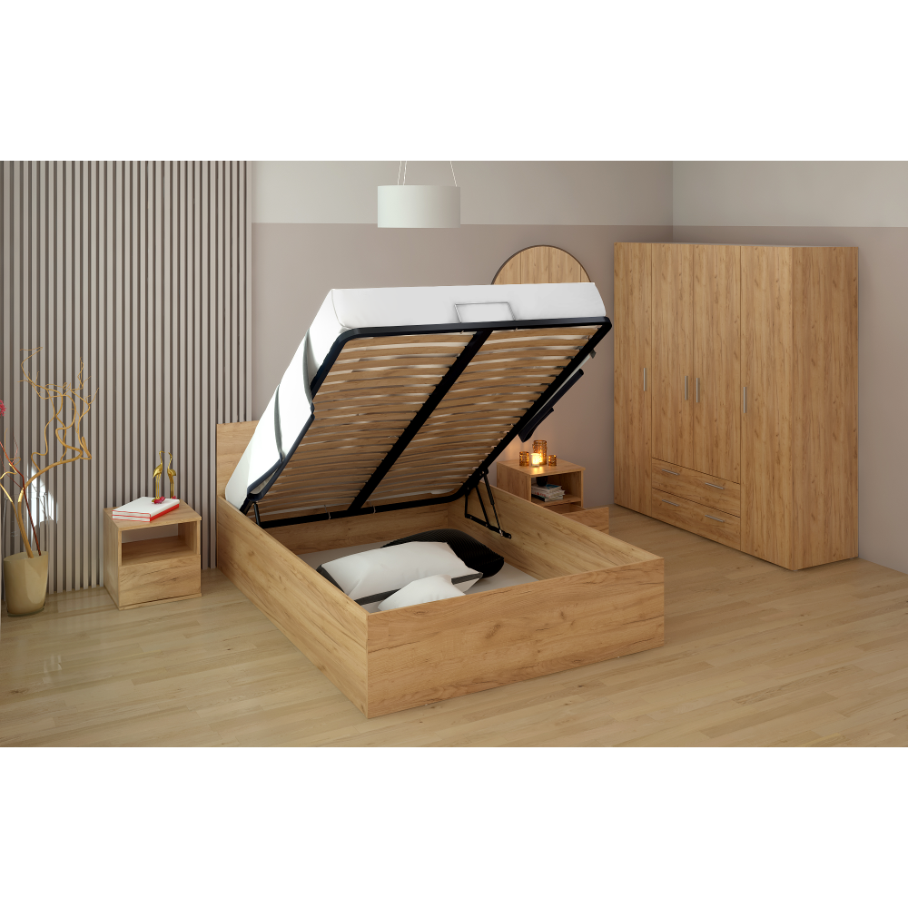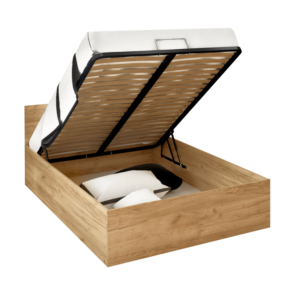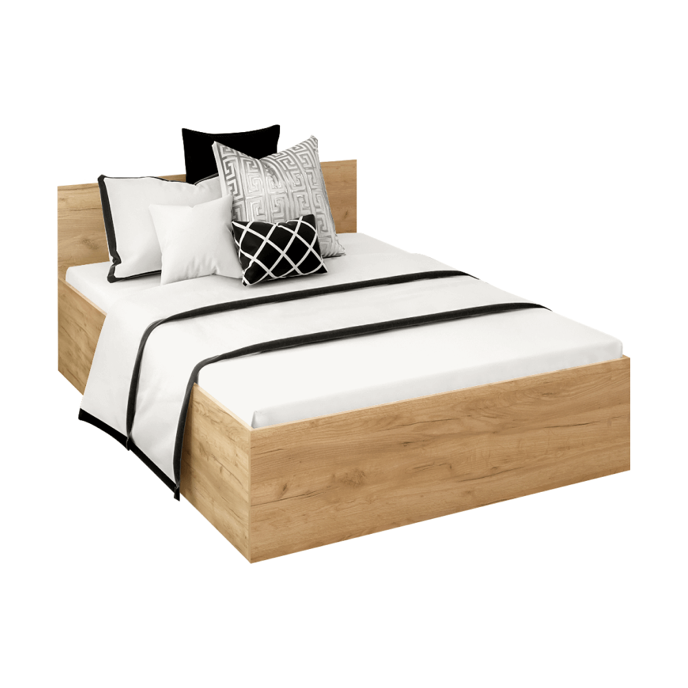 Material: DTD laminat Culoare: stejar craft auriu Dimensiuni (Lxlxh): 143,6x203,2x78,7 cm Dimensiuni zonă de dormit (Lxl): 140x200 cm Grosime DTD laminat: 1,6 cm Înălţimea până la grătar: 24,1 cm Înălţimea lateralei: 39,9 cm Înălţimea minimă recomandată a saltelei: 10 cm Single Cu spaţiu de depozitare Înălţimea patului deschis: 141 cm Portanţă pe persoană: 90 kg Livrat cu grătar metalic Livrat fără saltea Opţiune de a cumpăra o saltea din oferta noastră Design modern Produs slovac de calitate Livrat dezasamblat