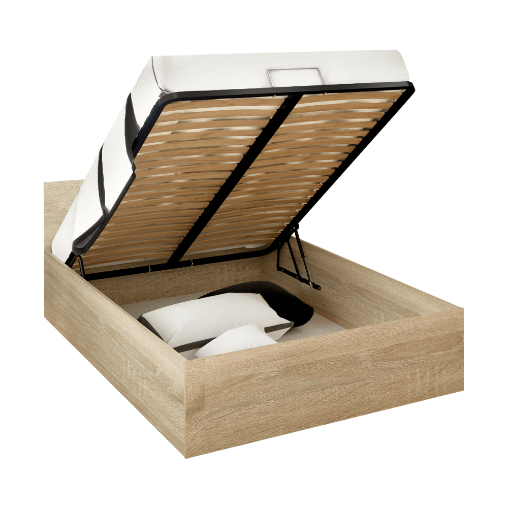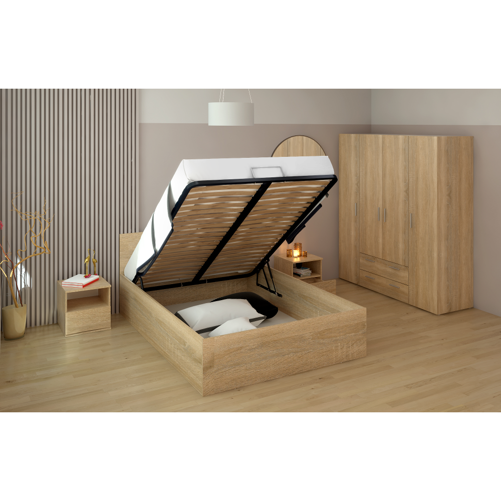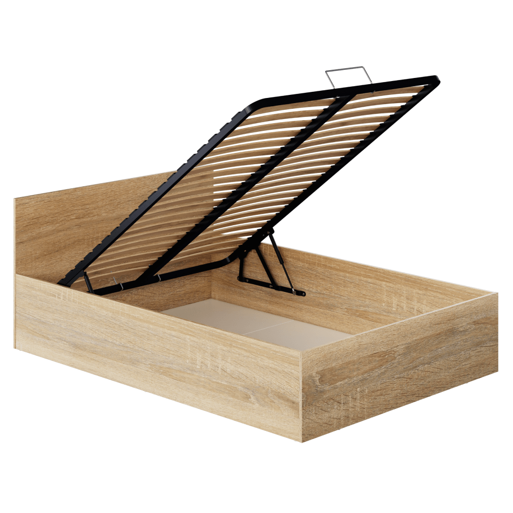 Material: DTD laminat Culoare: stejar sonoma Dimensiuni (Lxlxh): 143,6x203,2x78,7 cm Dimensiuni zonă de dormit (Lxl): 140x200 cm Grosime DTD laminat: 1,6 cm Înălţimea până la grătar: 24,1 cm Înălţimea lateralei: 39,9 cm Înălţimea minimă recomandată a saltelei: 10 cm Single Cu spaţiu de depozitare Înălţimea patului deschis: 141 cm Portanţă pe persoană: 90 kg Livrat cu grătar metalic Livrat fără saltea Opţiune de a cumpăra o saltea din oferta noastră Design modern Produs slovac de calitate Livrat dezasamblat