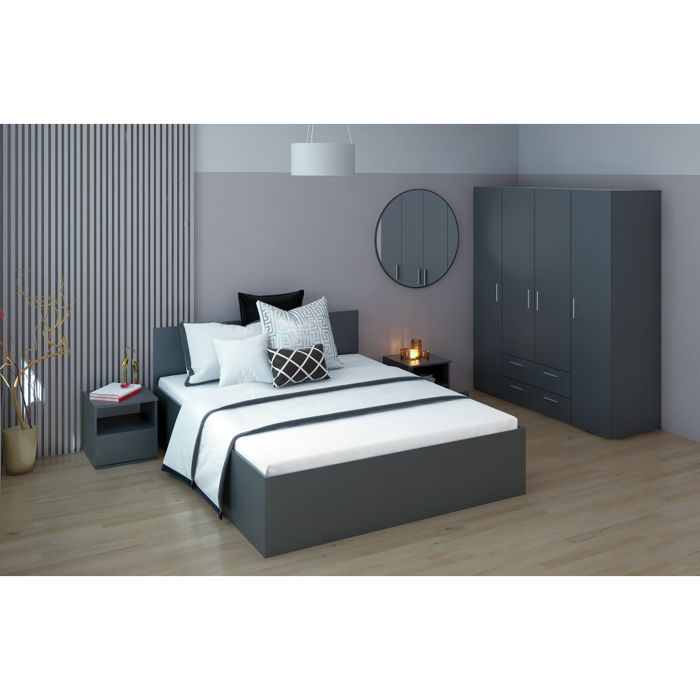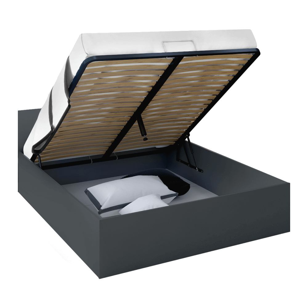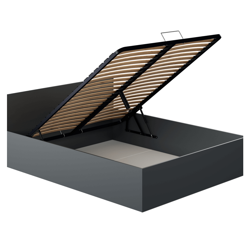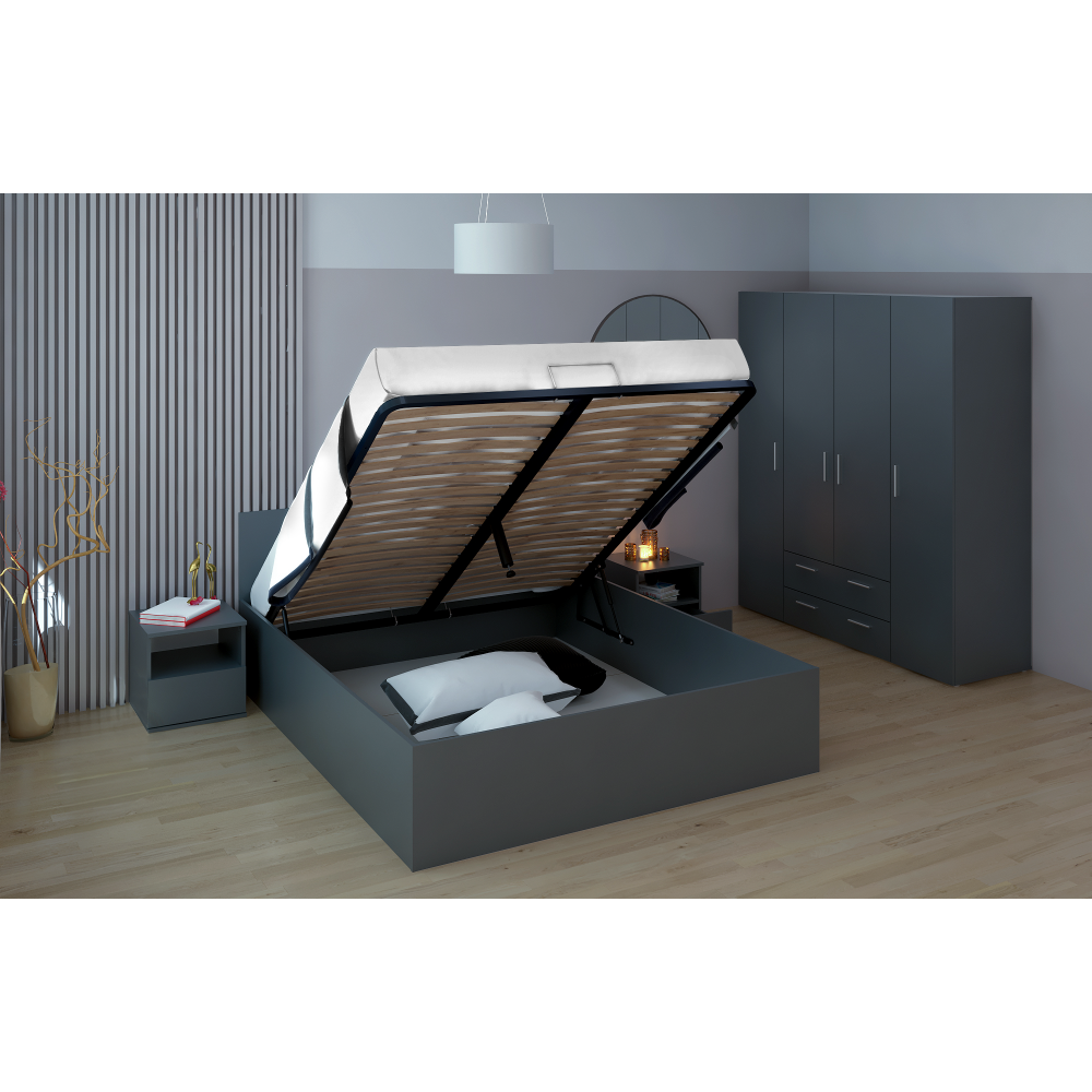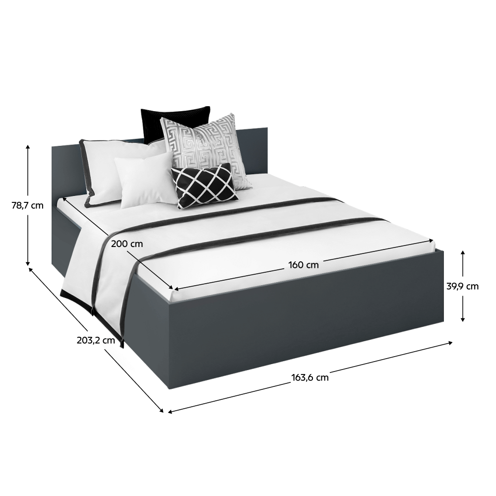 Material: DTD laminat Culoare: grafit Dimensiuni (Lxlxh): 163,6x203,2x78,7 cm Dimensiuni zonă de dormit (Lxl): 160x200 cm Grosime DTD laminat: 1,6 cm Înălţimea până la grătar: 24,1 cm Înălţimea lateralei: 39,9 cm Înălţimea minimă recomandată a saltelei: 10 cm Cu spaţiu de depozitare Înălţimea patului deschis: 141 cm Portanţă pe persoană: 90 kg Livrat cu grătar metalic Livrat fără saltea Opţiune de a cumpăra o saltea din oferta noastră Design modern Produs slovac de calitate Livrat dezasamblat