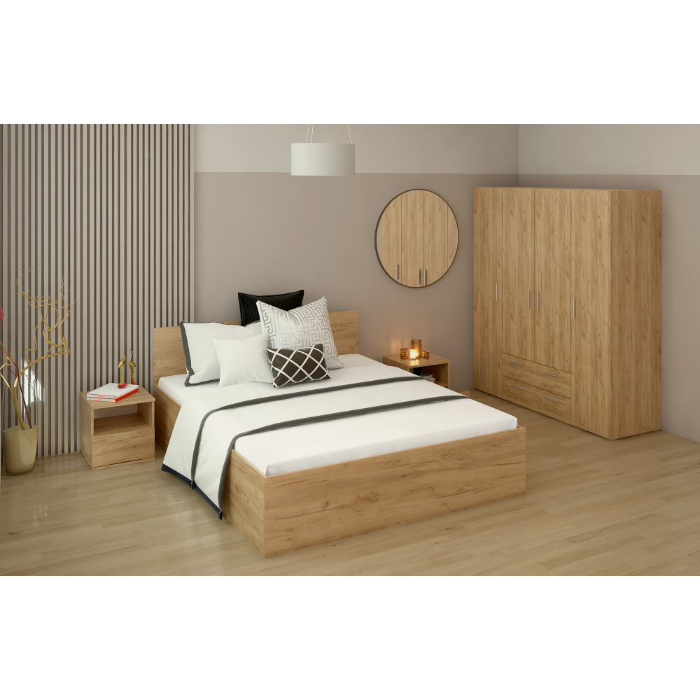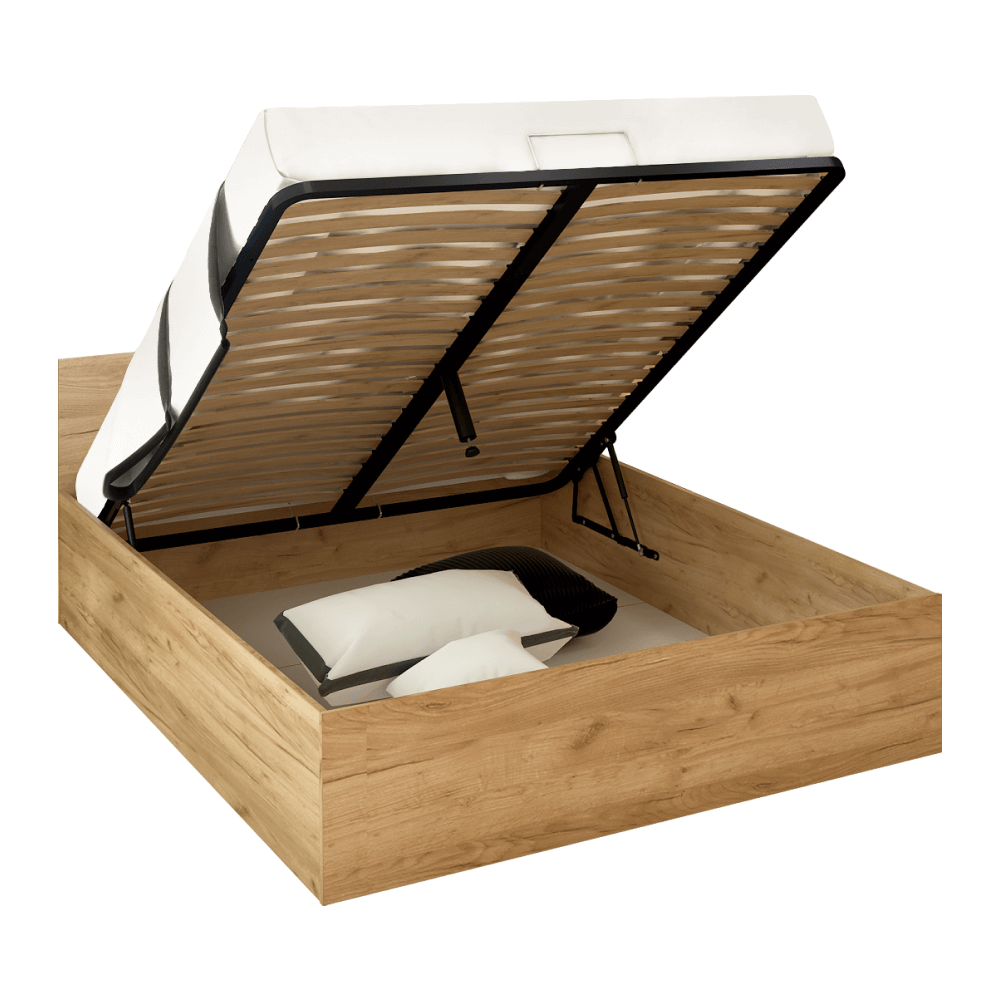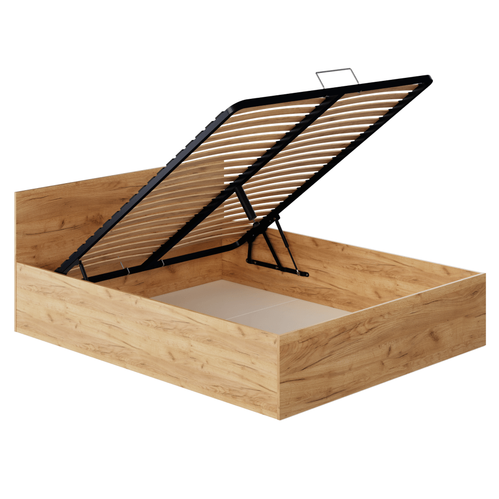 Material: DTD laminat Culoare: stejar craft auriu Dimensiuni (Lxlxh): 163,6x203,2x78,7 cm Dimensiuni zonă de dormit (Lxl): 160x200 cm Grosime DTD laminat: 1,6 cm Înălţimea până la grătar: 24,1 cm Înălţimea lateralei: 39,9 cm Înălţimea minimă recomandată a saltelei: 10 cm Cu spaţiu de depozitare Înălţimea patului deschis: 141 cm Portanţă pe persoană: 90 kg Livrat cu grătar metalic Livrat fără saltea Opţiune de a cumpăra o saltea din oferta noastră Design modern Produs slovac de calitate Livrat dezasamblat