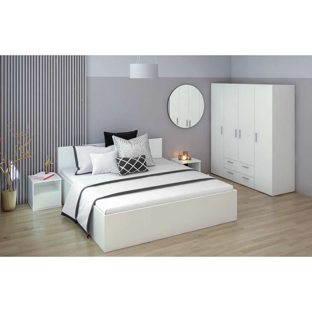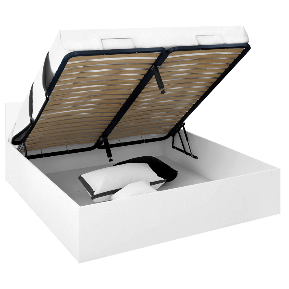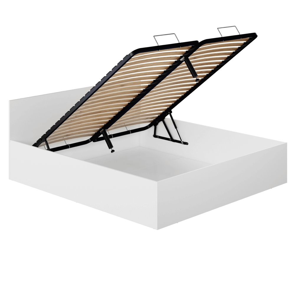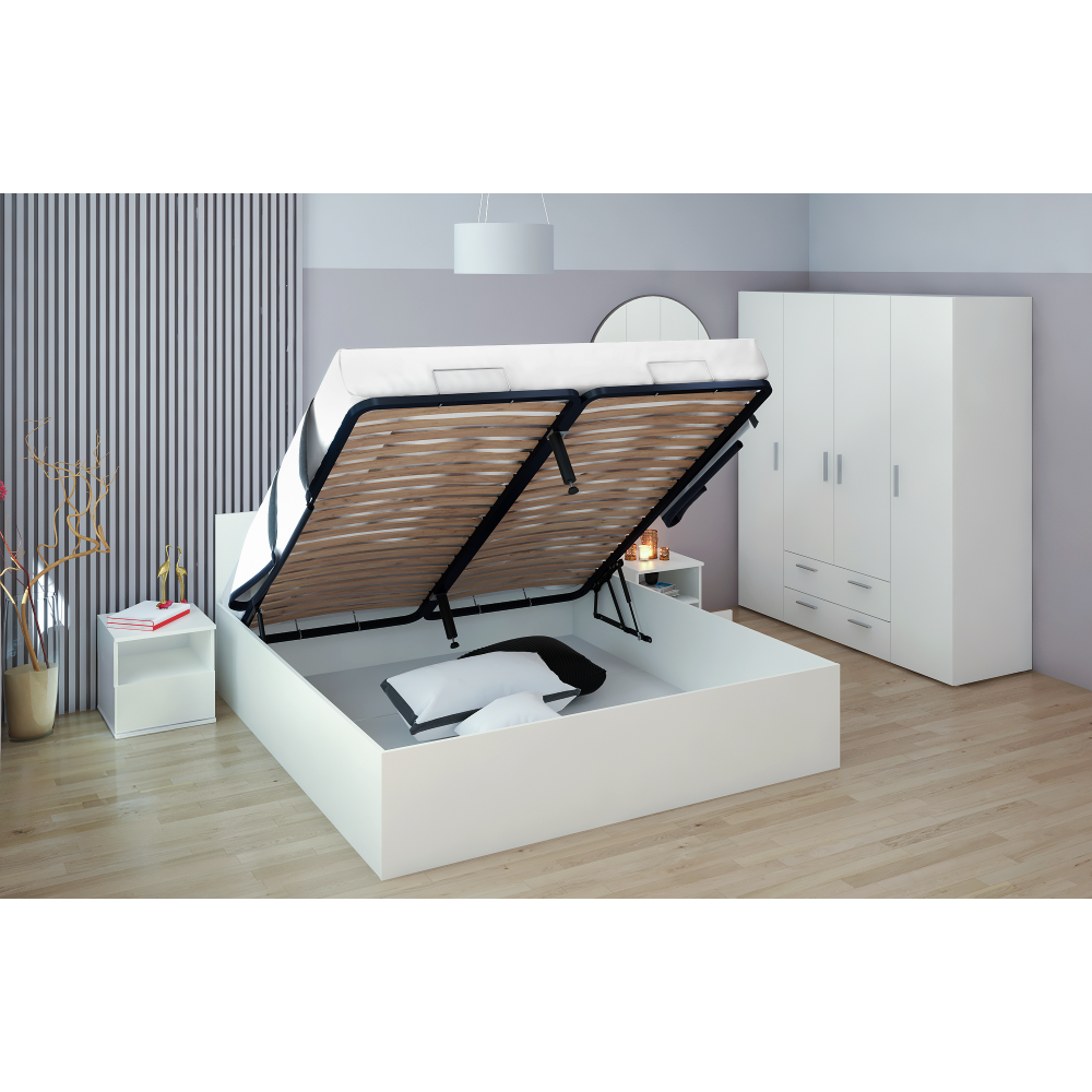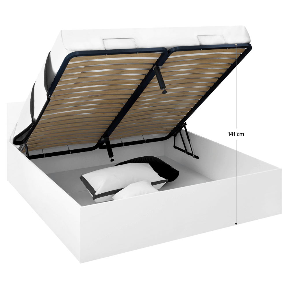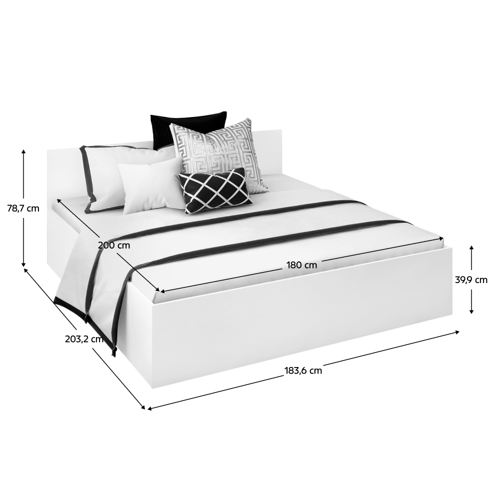 Material: DTD laminat Culoare: albă Dimensiuni (Lxlxh): 183,6x203,2x78,7 cm Dimensiuni zonă de dormit (Lxl): 180x200 cm Grosime DTD laminat: 1,6 cm Înălţimea până la grătar: 24,1 cm Înălţimea lateralei: 39,9 cm Înălţimea minimă recomandată a saltelei: 10 cm Cu spaţiu de depozitare Înălţimea patului deschis: 141 cm Portanţă pe persoană: 90 kg Livrat cu grătar metalic Livrat fără saltea Opţiune de a cumpăra o saltea din oferta noastră Design modern Produs slovac de calitate Livrat dezasamblat
