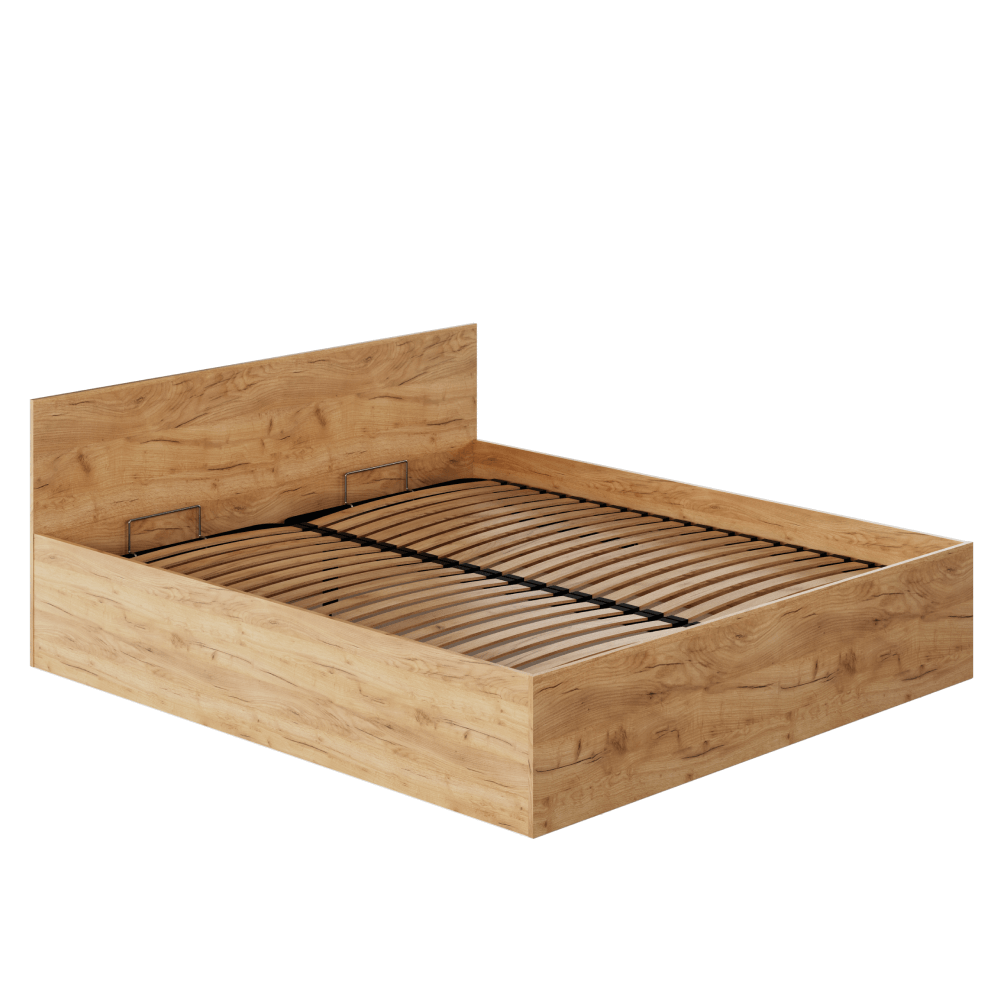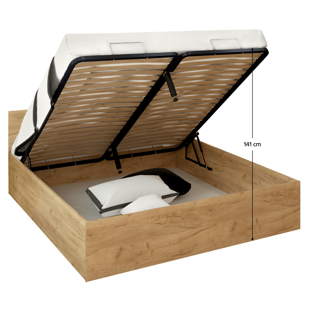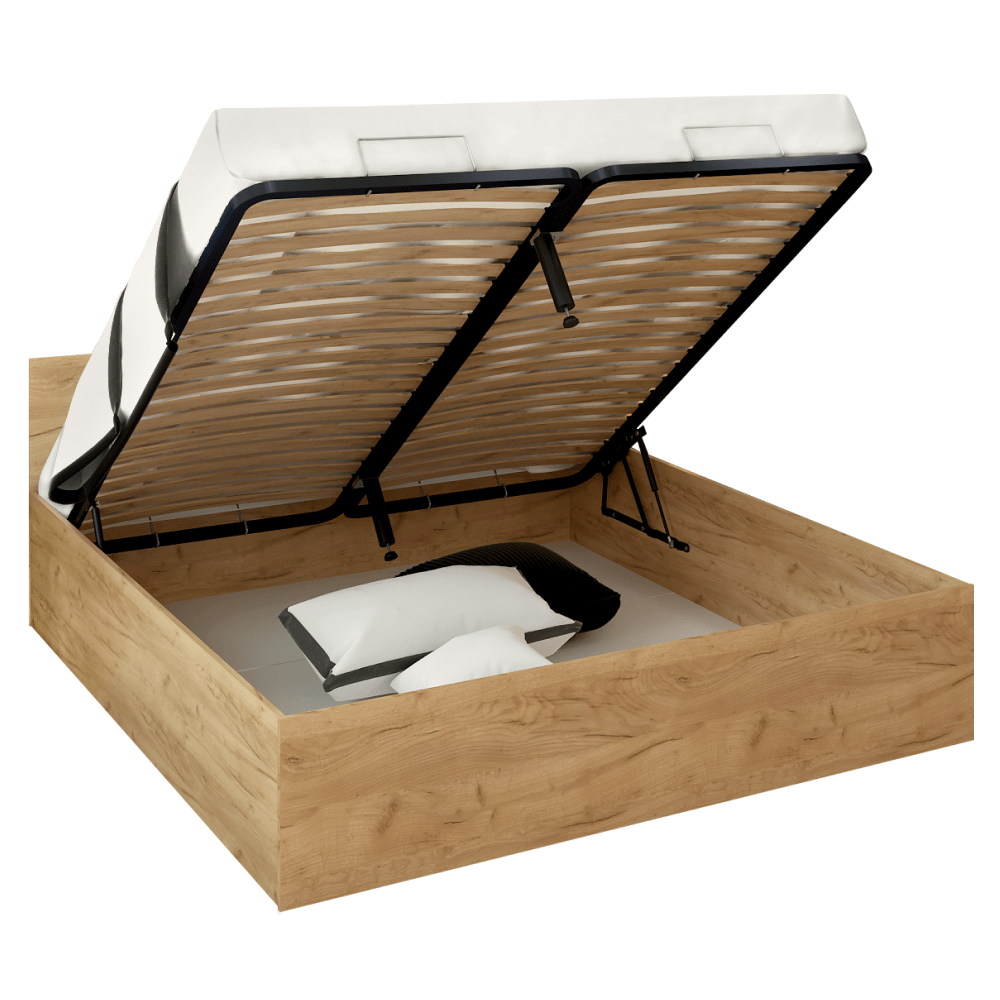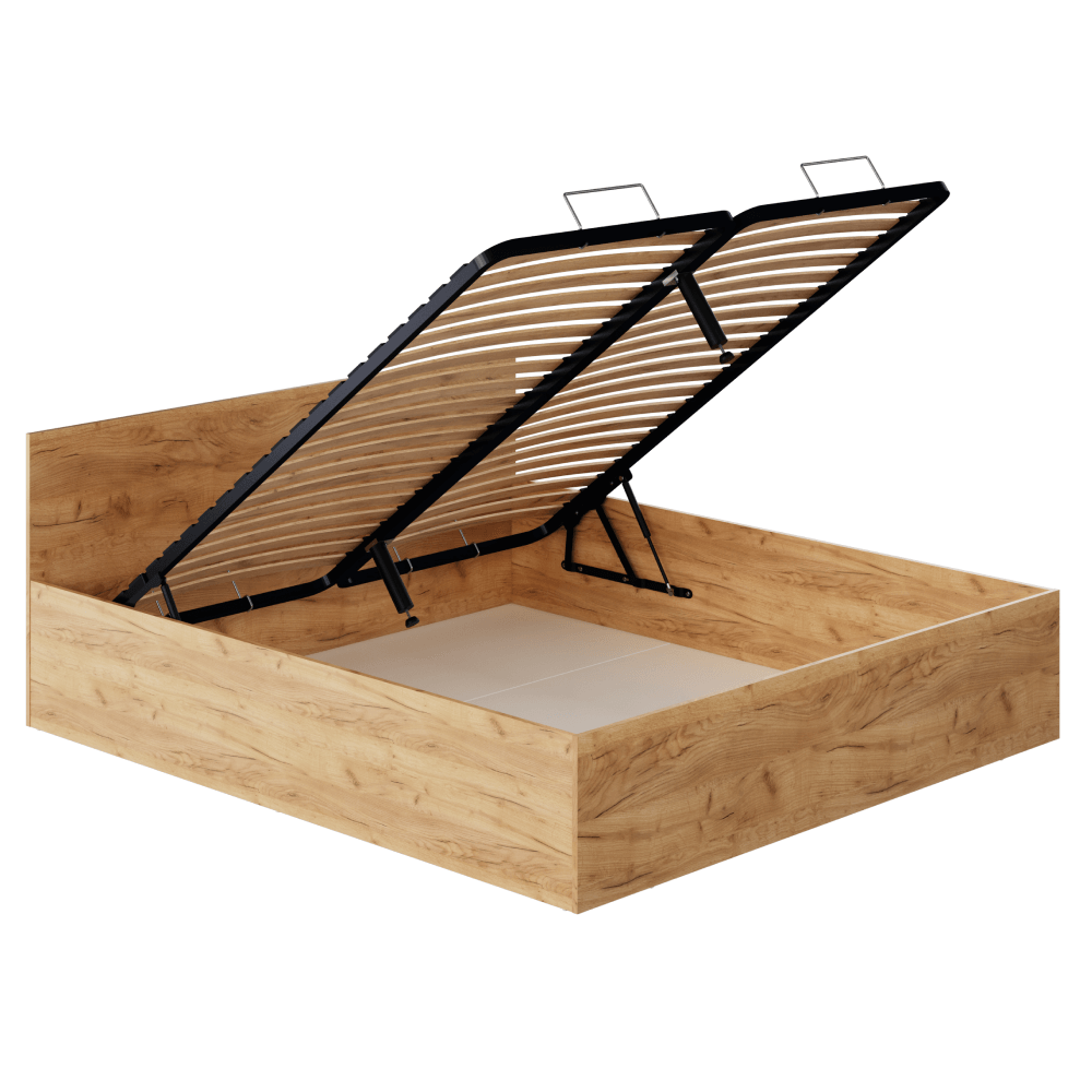 Pat cu grătar metalic şi spaţiu de depozitare, 180x200, stejar craft auriu, DOLI