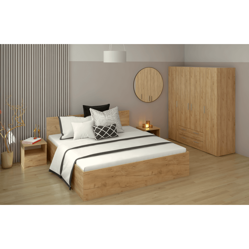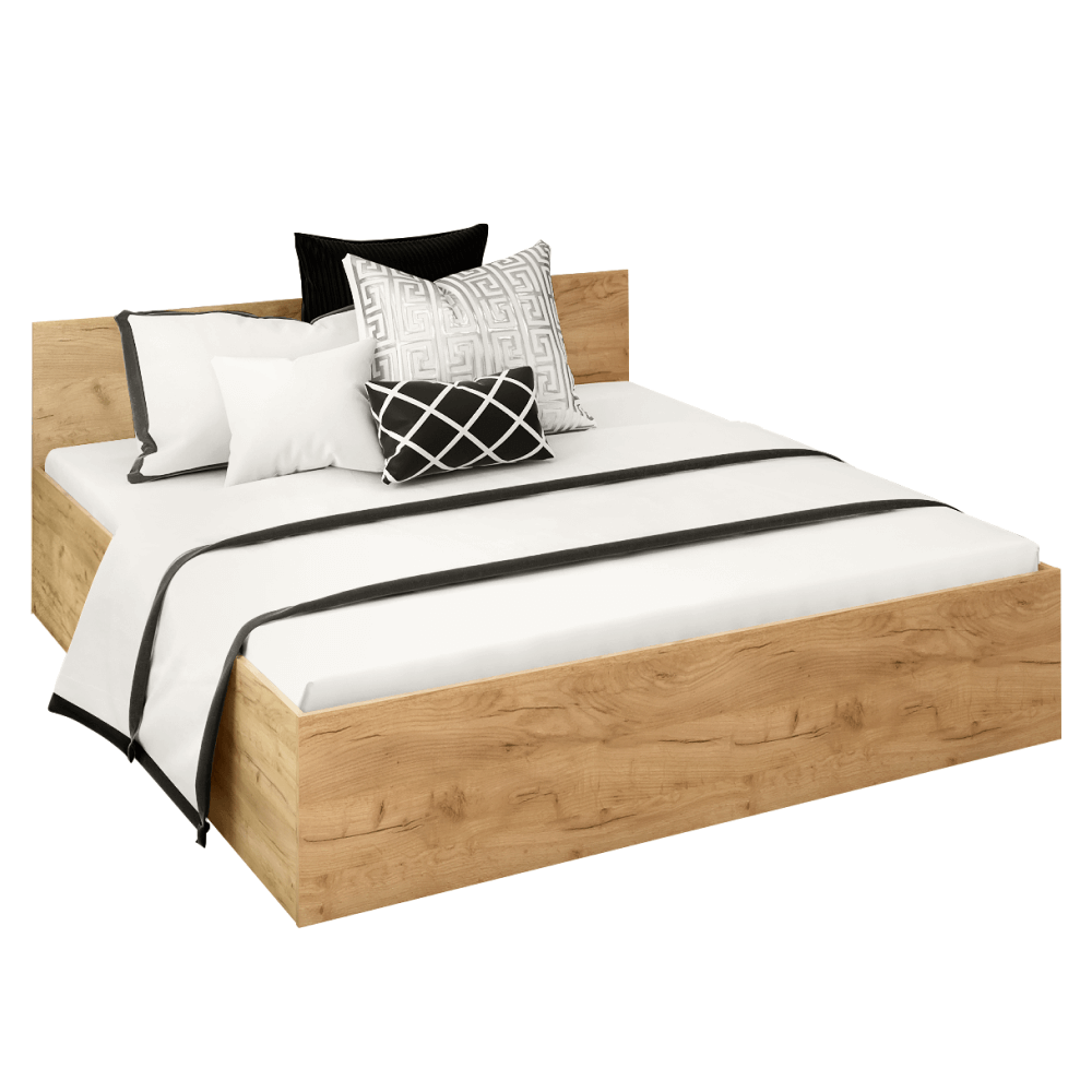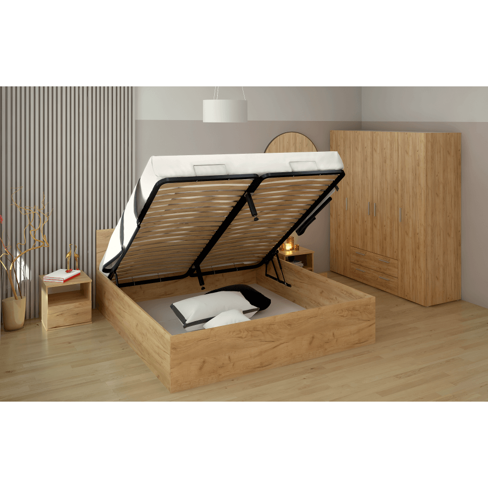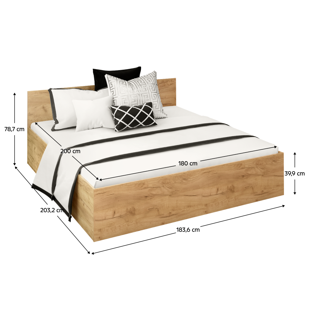 Pat cu grătar metalic şi spaţiu de depozitare, 180x200, stejar craft auriu, DOLI