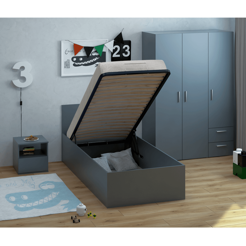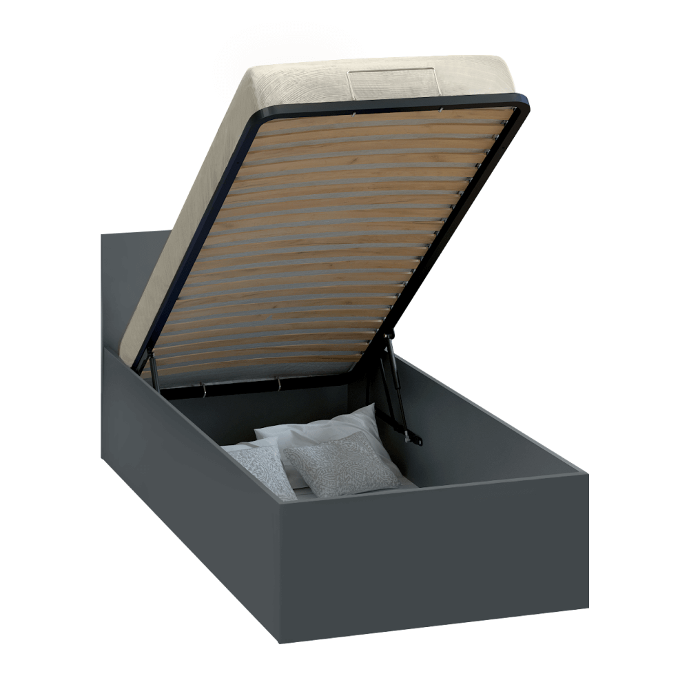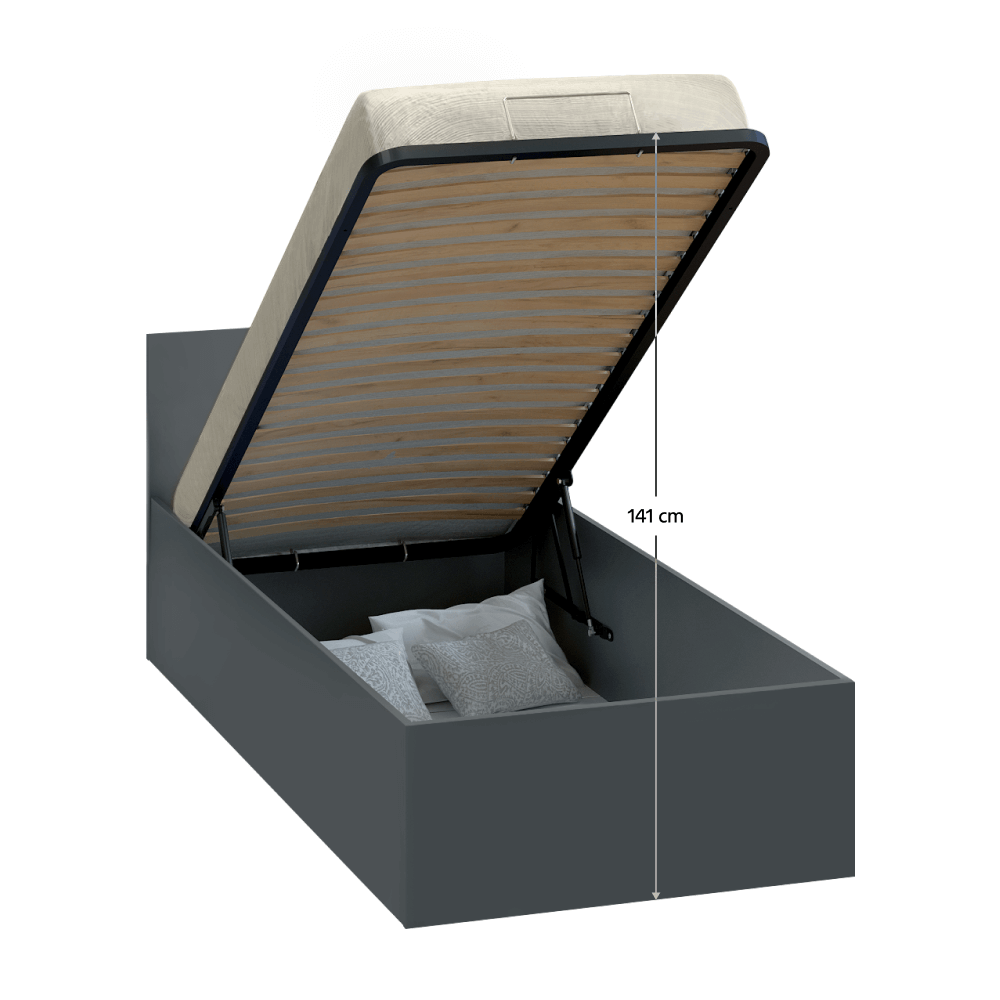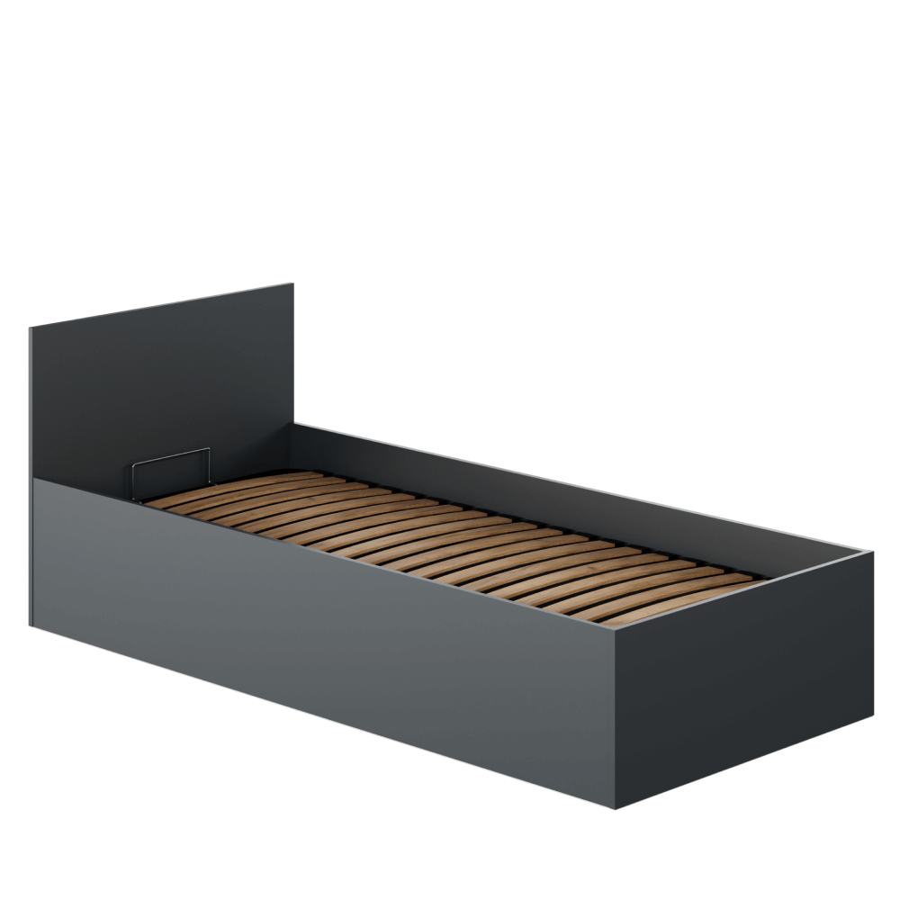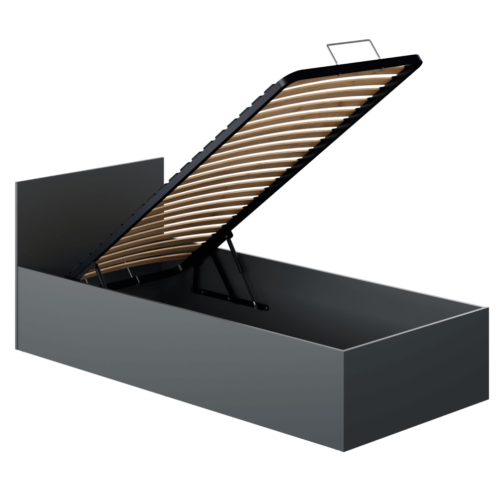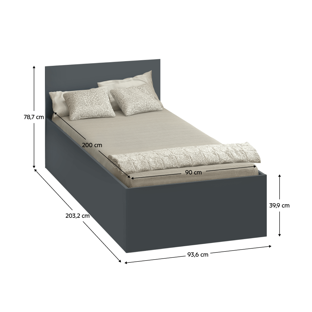 Pat cu grătar metalic şi spaţiu de depozitare, 90x200, grafit, DOLI