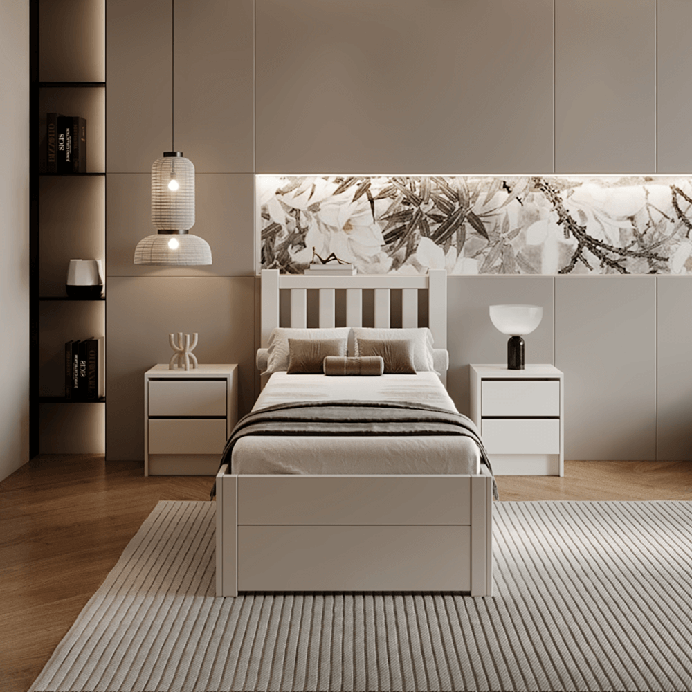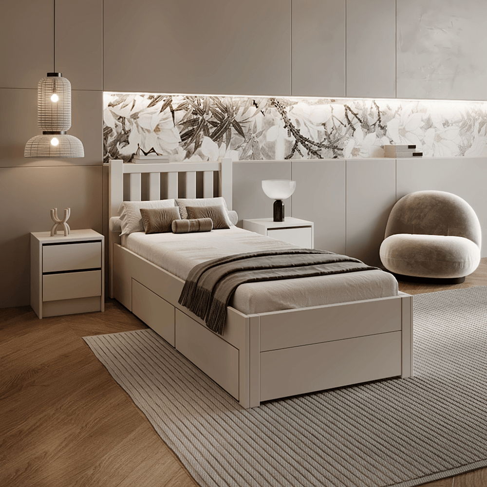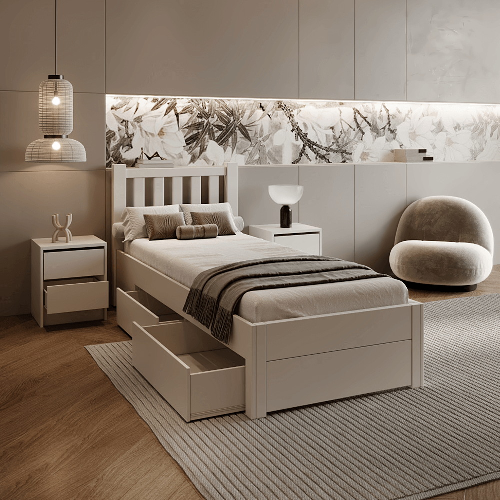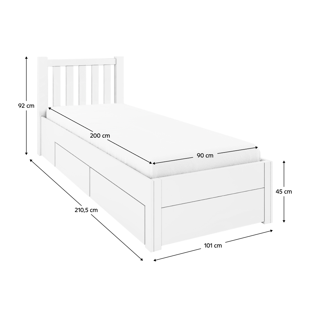 Pat cu spaţiu de depozitare, 90x200, alb, LUSY