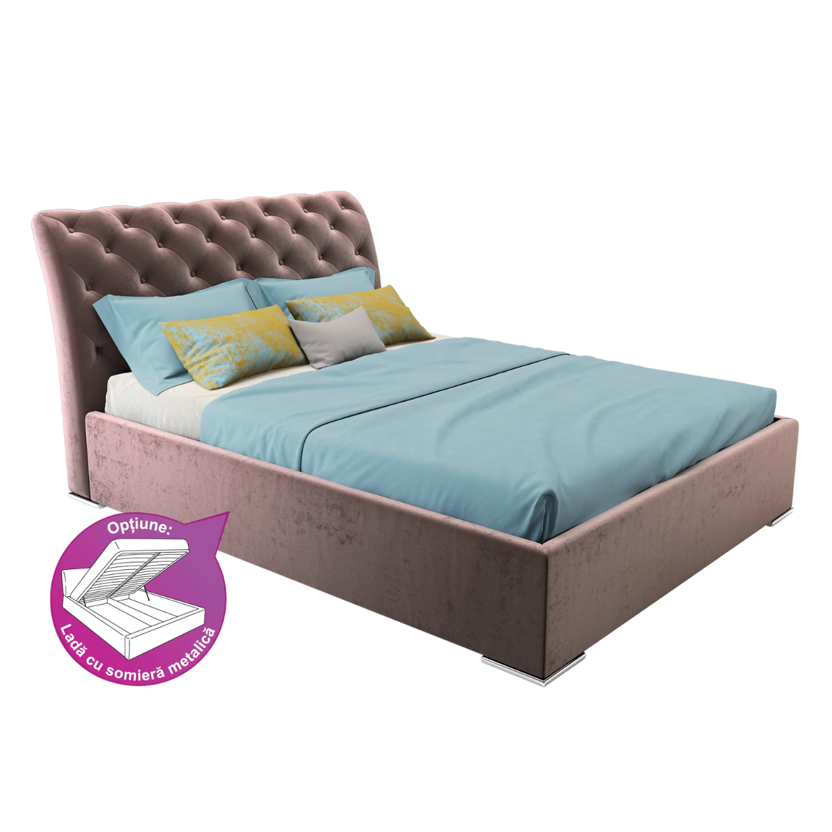 • Somiera metalică poate fi achiziționată doar în componență cu pat tapițat integral.