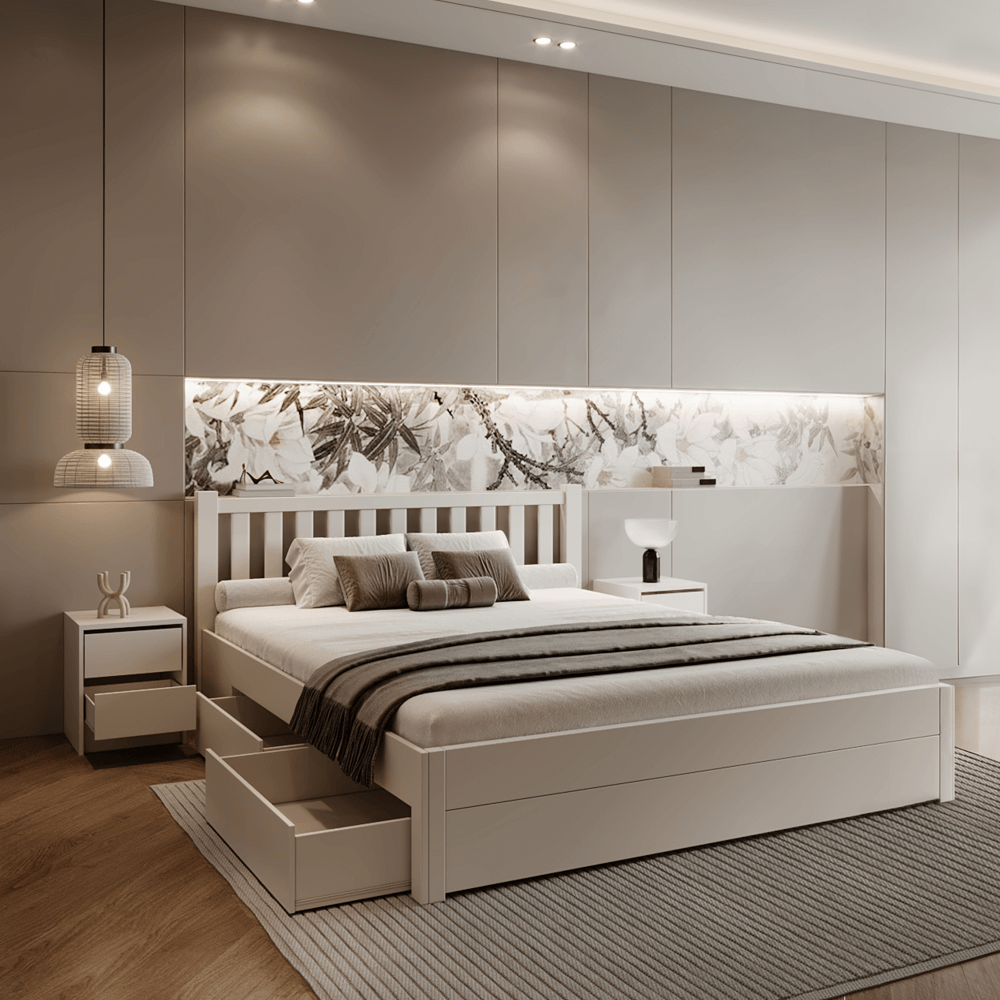 Material: LDTD/MDF/HDF Culoare: albă Dimensiuni (Lxlxh): 171x210,5x92 cm suprafaţa pentru dormit (Lxl): 160x200 cm Grosime material DTD: 1,6-2,2 cm Grosimea materialului MDF: 2,2 cm Grosimea materialului HDF: 0,3 cm Înălţimea cadrului patului: 45 cm Portanţă per persoană: 90 kg Universal Spaţiu de depozitare Patru sertare Sertare cu role Adâncimea sertarelor: 55 cm Portanţă sertar: 5 kg Livrat fără saltea şi grătar Opţiunea de a cumpăra salteaua şi somiera din oferta noastră Recomandăm un grătar într-un cadru fix Înălţimea minimă a saltelei: 16,5 cm Produs slovac de calitate Livrat dezasamblat