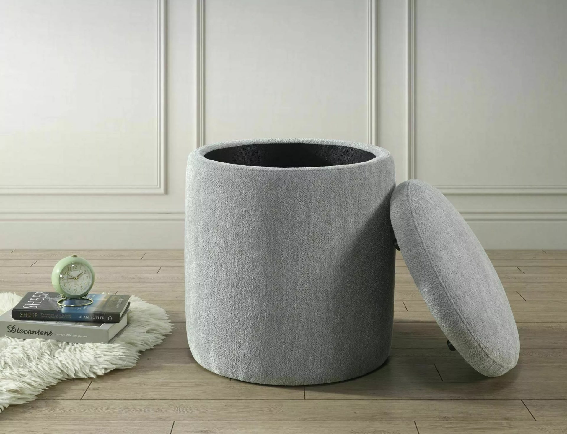 Pufă cu depozitare, tapițerie: țesătură Raven, culoare: gri.