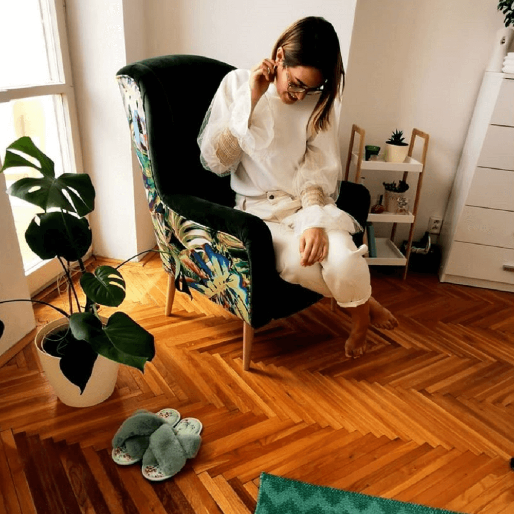 Scaun de design, ţesătură smarald/model Jungle, BELEK