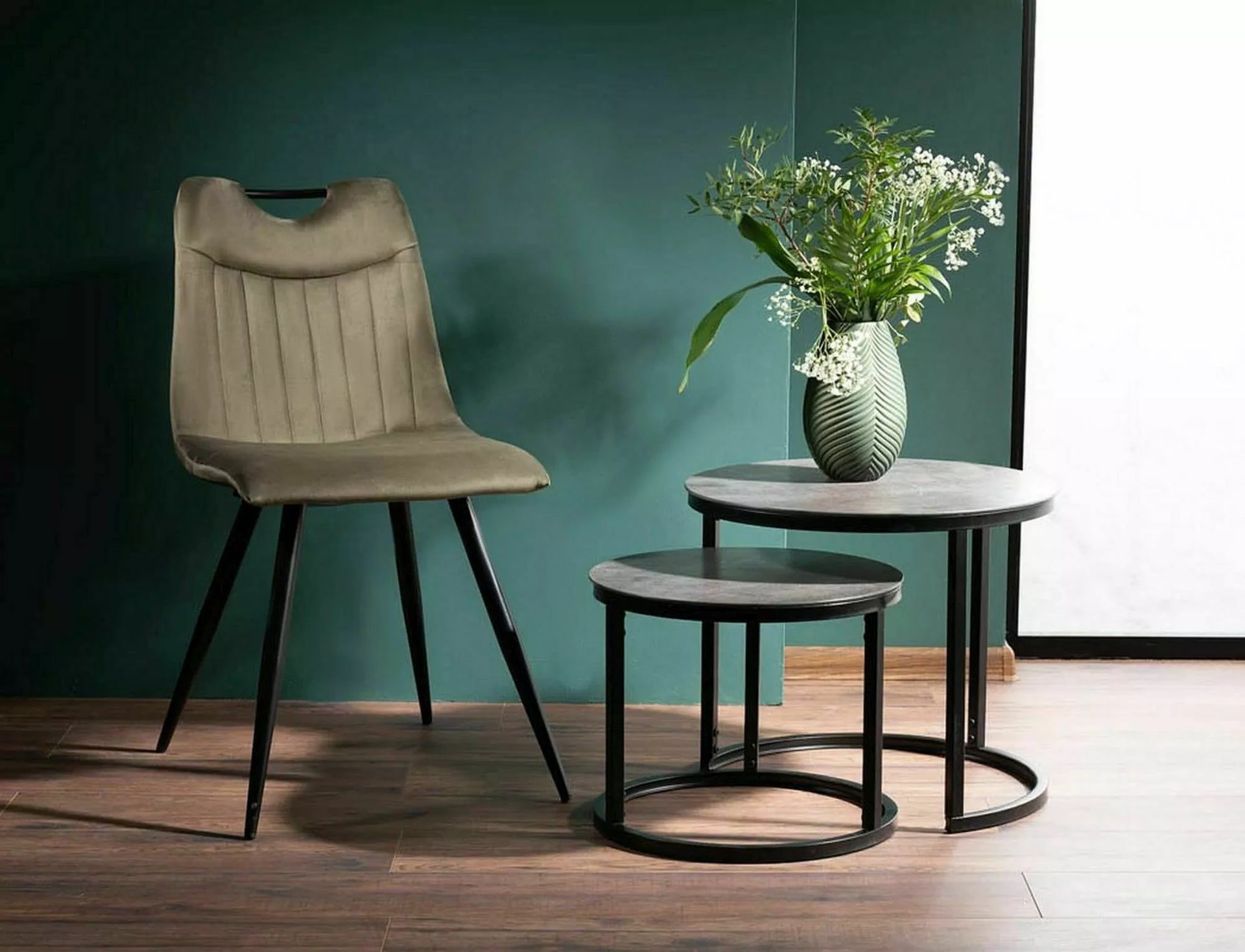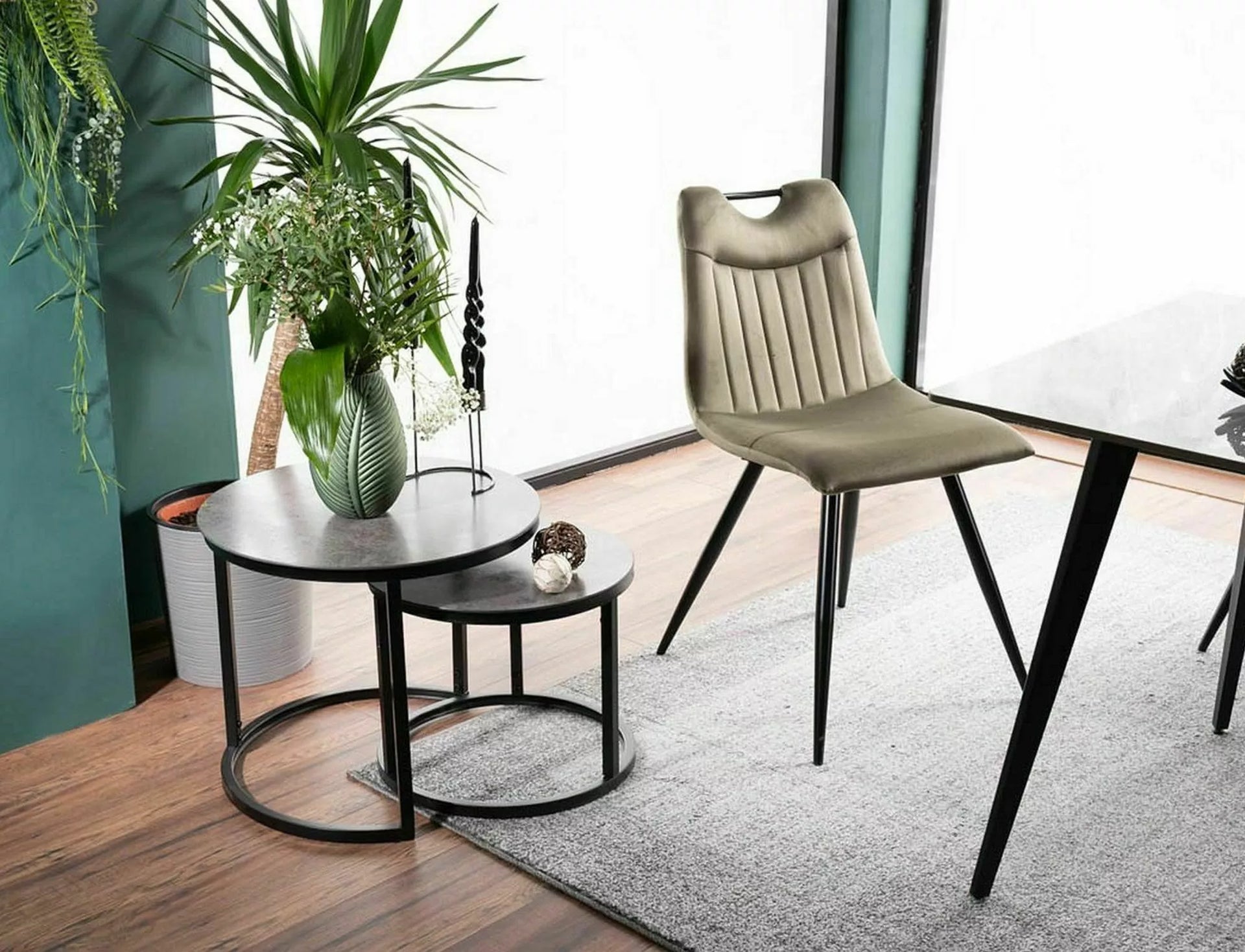 Scaun, material Bluvel 77 - măsliniu, cadru: metal, culoare: negru mat.