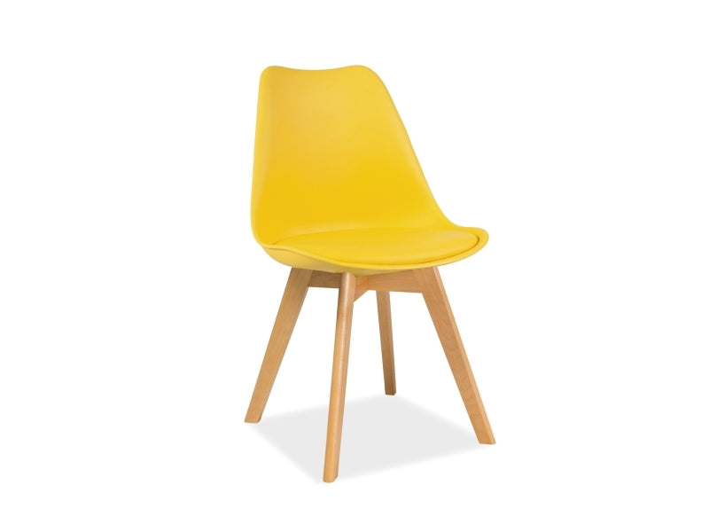Scaun, sezut din PP + piele ecologica, culoare: galben / cadru din lemn de fag.