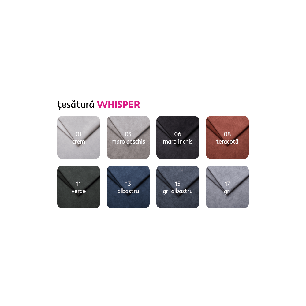 Material tapiţerie: WHISPER 04 Rezistenţa la frecare a ţesăturii conform testului Martindale: 100.000 Culoare tapiţerie: maro Dimensiuni (LxAxÎ): 275x205x75/95 cm Suprafaţa pentru dormit (LxL): 125x195 cm Înălţime scaun: 43 cm Adâncime scaun: 58 cm Dimensiuni otoman (LxL): 105x165 cm Dimensiuni cotieră (LxAxÎ): 35x100x57 cm Lăţime scaun: 140 cm Cu picioare Material picioare: metal Culoare picioare: neagră Înălţimea compartimentului inferior de la podea: 10,5 cm Umplutura: arcuri ondulate + spumă poliuretanică Extensibilă Colţar Tapiţată integral Cu spaţiu de depozitare 3 tetiere ajustabile 5 grade de înclinare a tetierelor În formă de ?L? Variantă pentru partea dreaptă Livrată dezasamblată Posibilitatea de a alege dintre 8 nuanţe ale ţesăturii Whisper la preţul de 7.205 Lei cu termenul de livrare de 6-8 săptămâni. Pentru comenzi personalizate este necesară plata unui avans de 10% din suma totală. După achitarea avansului, comanda dumneavoastră va intra în producţie.