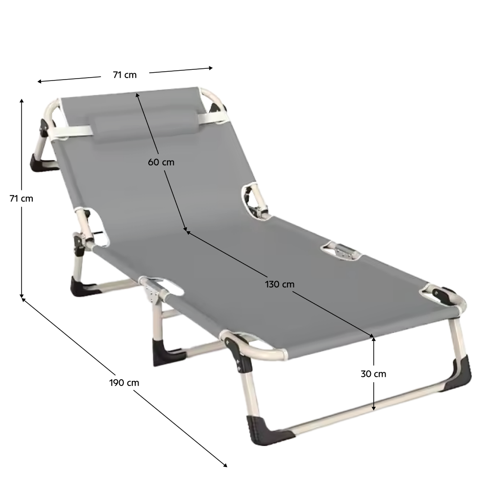 Material: oţel/ţesătură Oxford Rezistenţa la frecare a ţesăturii conform testului Martindale: 7 600 de cicluri de frecare Culoare: bej/gri Dimensiuni (lxAxh): 71x190x71 cm Înălţimea părţii de şezut: 30 cm Adâncimea părţii de şezut: 130 cm Lăţimea părţii de şezut: 71 cm Înălţime spătar: 60 cm Lăţime spătar: 71 cm Portanţă: 100 kg Greutate: 5,5 kg De grădină Pliabil Tetieră ţesătură rezistentă la apă Practic Design modern Livrat asamblat