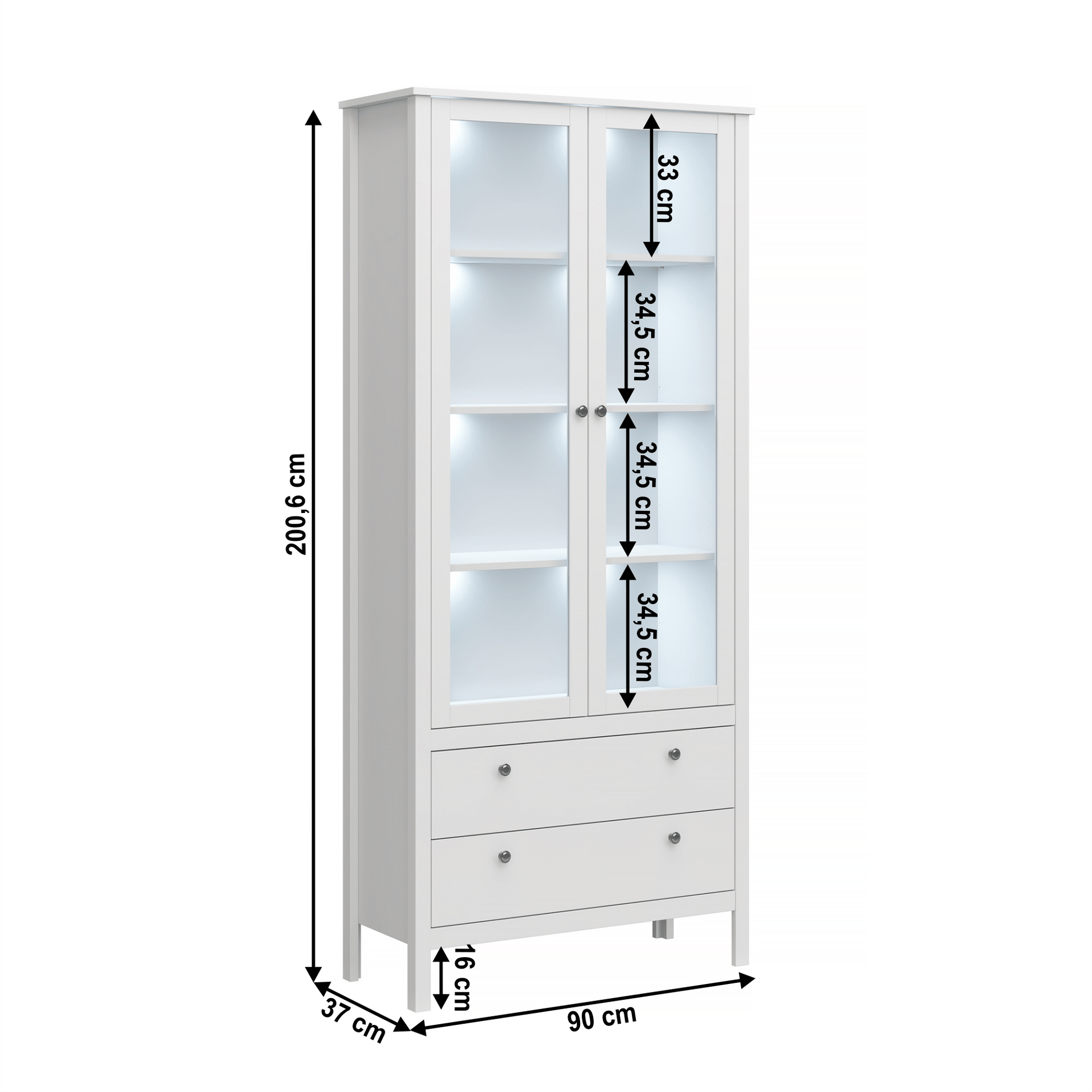 Vitrină 2W2S, alb, OLJE