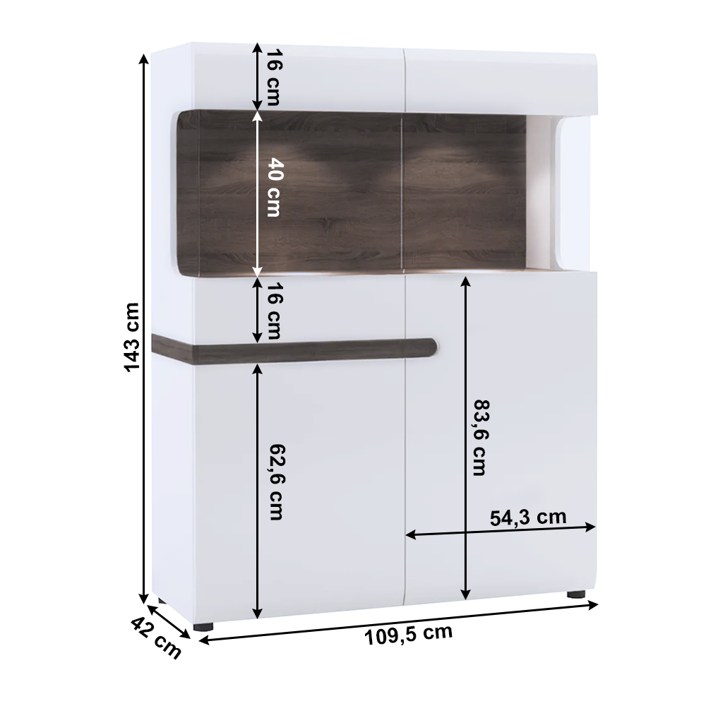 Vitrină, albă extra luciu ridicat HG/stejar sonoma închis, LYNATET TYP 33