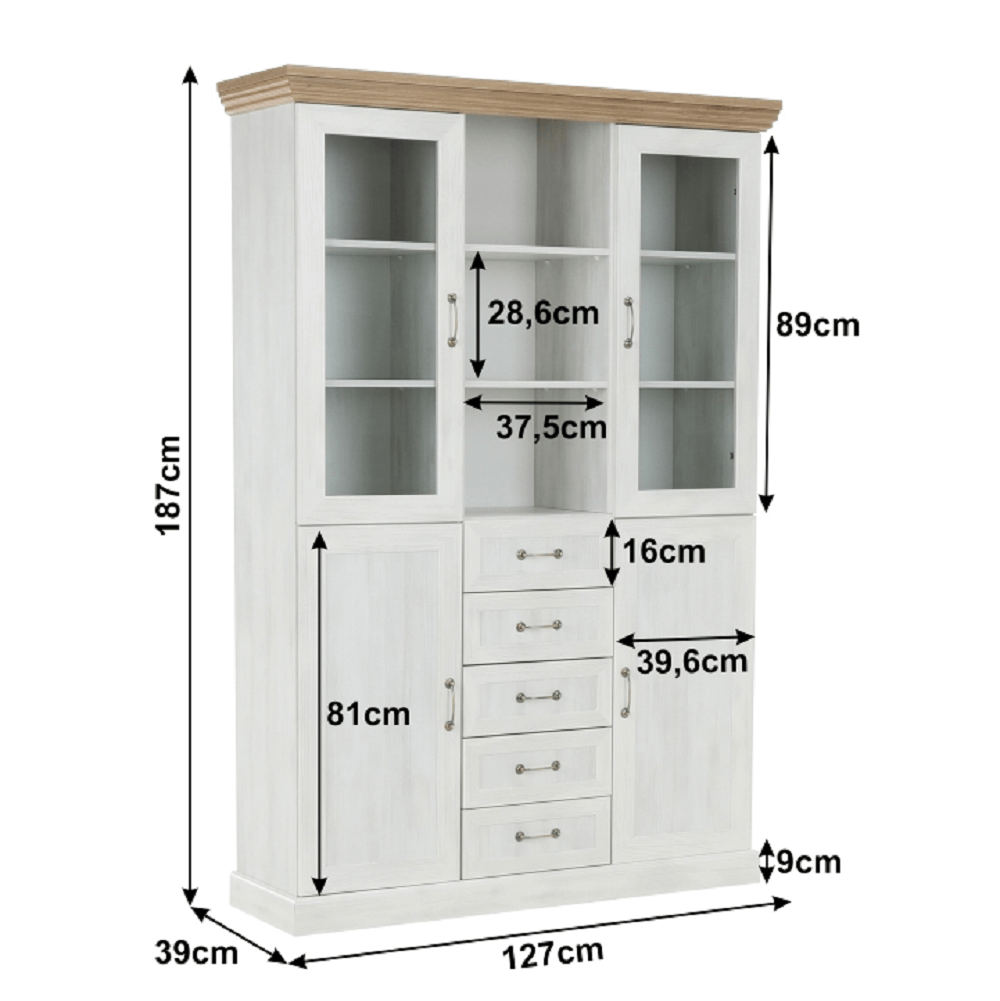 Vitrină, pin nordic/stejar sălbatic, ROYAL W2D