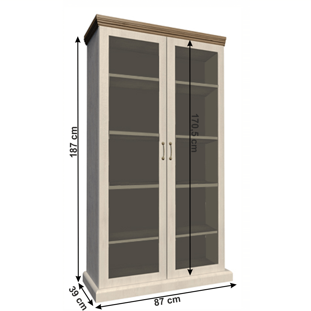 Vitrină WS cu două uşi, cu cinci rafturi, din ansamblul modular elegant Royal în stilul provensal.